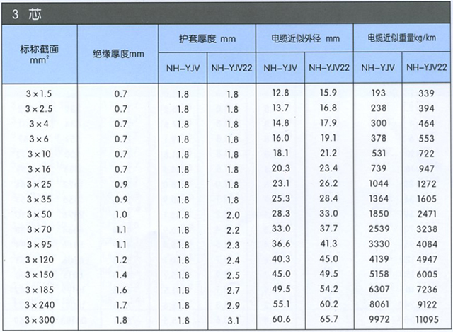线芯短路温度:短路时最长持续时间不超过5s,电缆导体的最高温度不超过250℃。